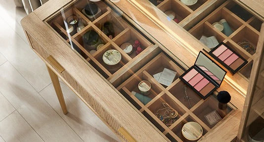 The integrated tempered glass tabletop brings a touch of elegance while making cleaning and upkeep a breeze. The removable partition provides flexible storage options, allowing you to easily adjust the layout to suit your needs.